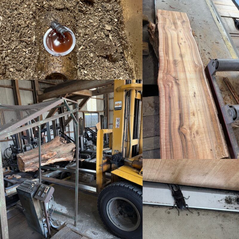 製材後に時期ハズレのクワガタが事務所内を歩いていたため、保護しカブトムシのエサを食べさせました。