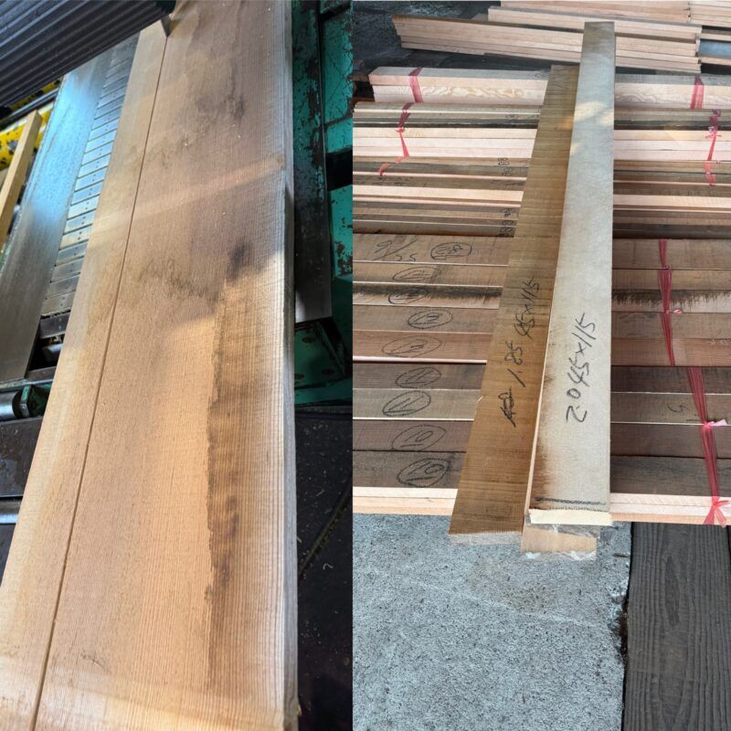 今日は、朝からスプルス4面無地材の45mm厚で2m.1.85mの木取り出荷を行い、米松材の木取りを行なっていました。最近は、日中も寒くなってきました。