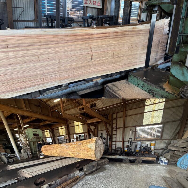 年末に入荷してた杉の丸太も綺麗に皮も剥き終わりましたので、製材の準備でまずは向きを見ながら芯で大割りしました。 これからは、建築用で製材していきます