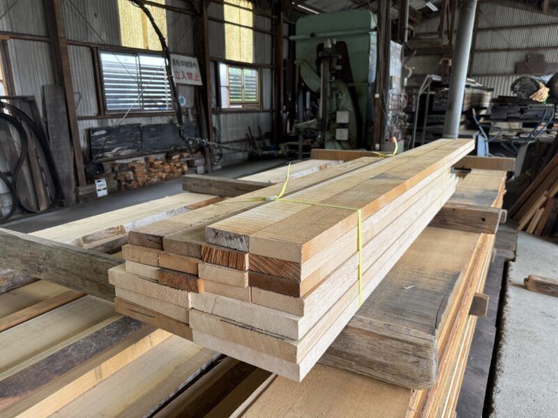 米栂材の、3面無地平柾枠材でのご注文の、木取り製材出荷を行いました. 長さも1.8m〜2.5m、幅も105〜240とありました。